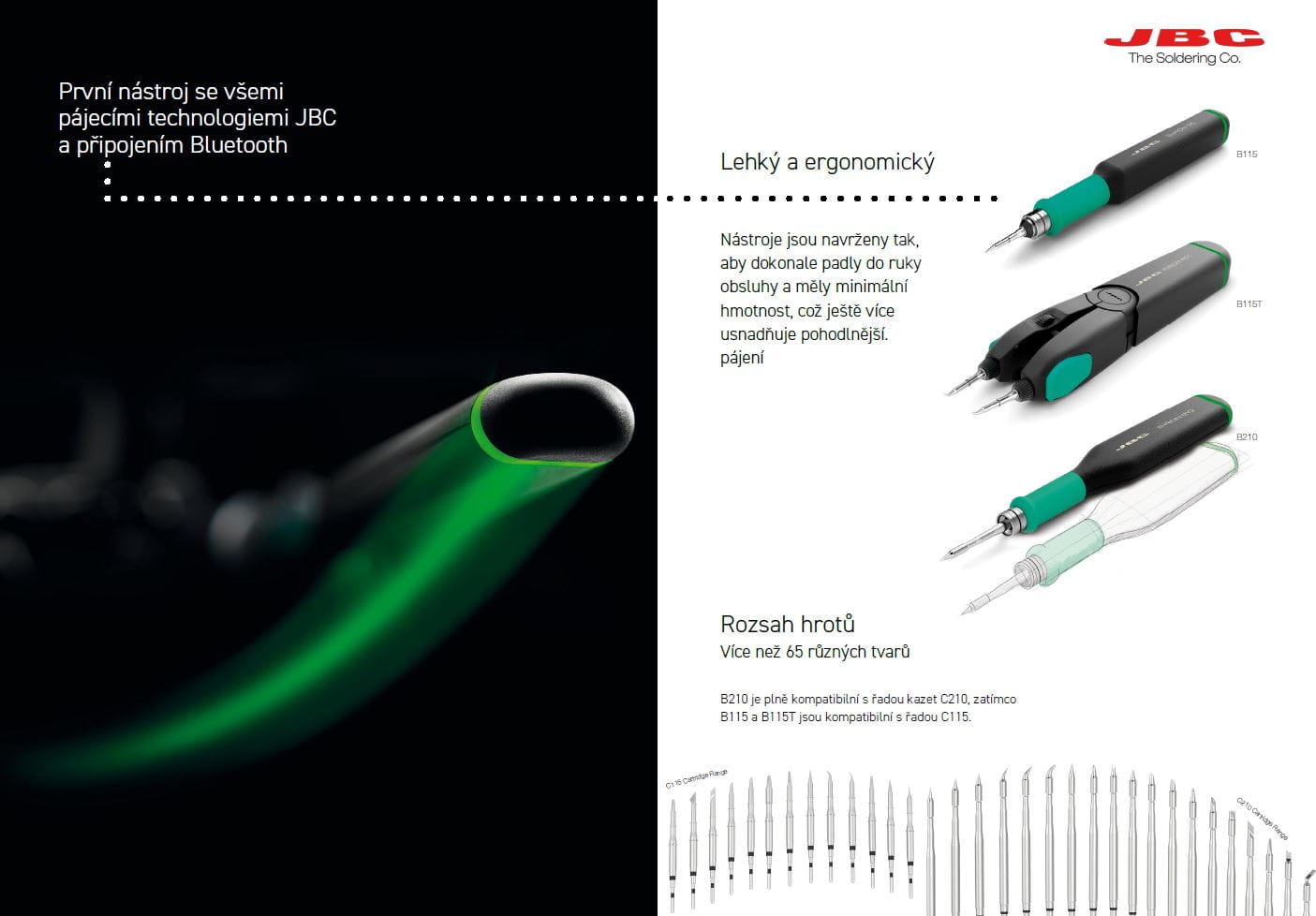 Pájecí pero B210 je navrženo tak, aby perfektně sedělo v ruce, s minimální hmotností, díky čemuž proces pájení bude ještě pohodlnější. Pájecí pero umožnuje kombinaci více než 65 různých tvarů pájecích hrotů. B210 je plně kompatibilní s pájecími hroty C210, zatímco B115 a B115T jsou kompatibilní s pájecími hroty řady C115.
