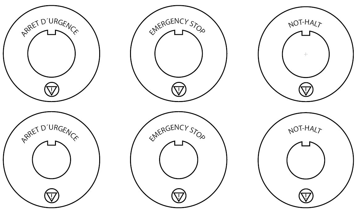 Hlavní charakteristiky změn: Text a symbol z IEC 60417-5638 podle ISO 13850: 2015 standardní požadavky