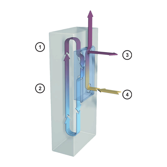 • Jedna smyčka uzavírá přívod okolního vzduchu a ochlazuje a cirkuluje čistý vzduch do skříně.